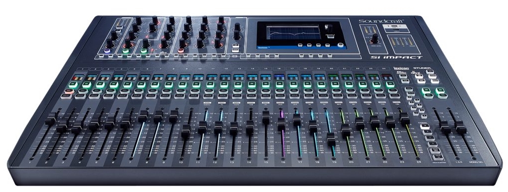24 motorised faders (6 layers = up to 144 channels control) Dual 12” touchscreens